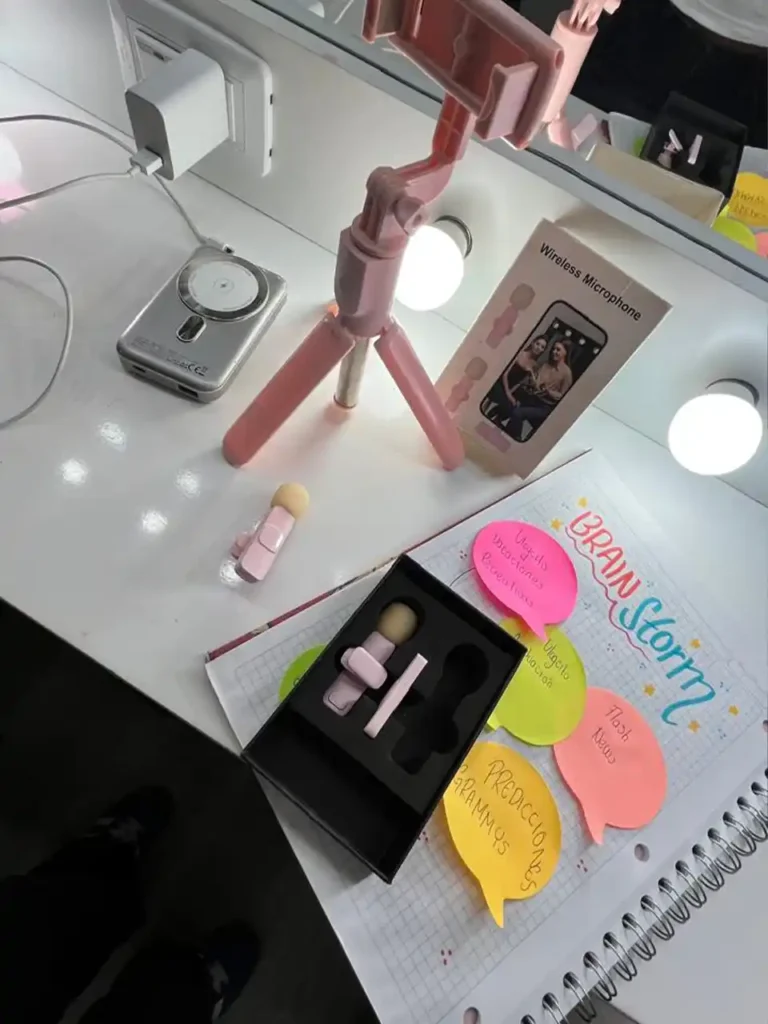 Camarógrafo/a: acomodas el celular, el aro de luz o el trípode.